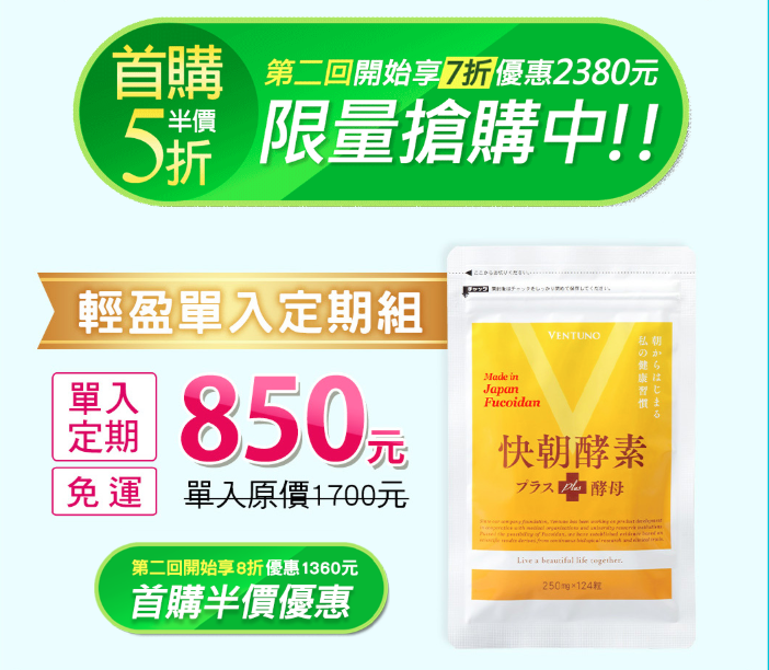 5折下殺優惠850元購入快朝酵素的特殊通道