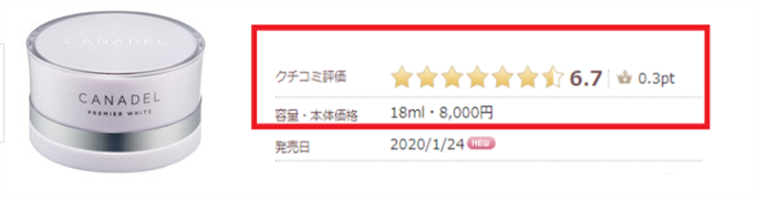而且CANADEL珂娜希在@cosme獲得6.7星超高評