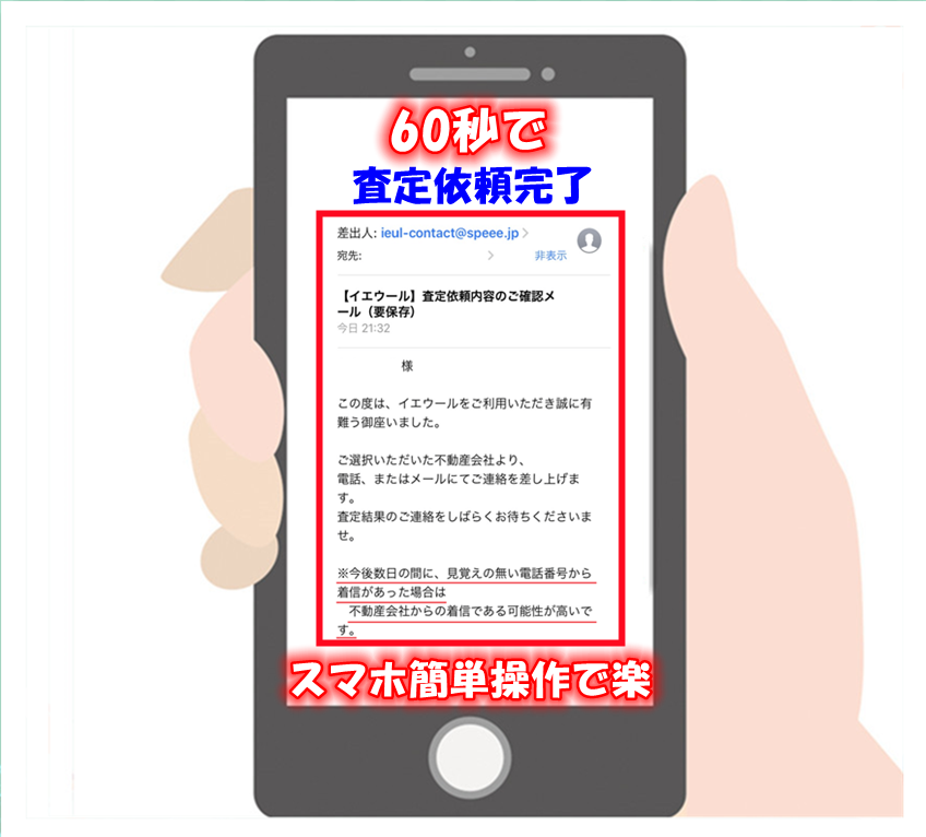 イエウールのおかげで、スマけ簡単操作でわずか60秒で査定依頼が完了しました!