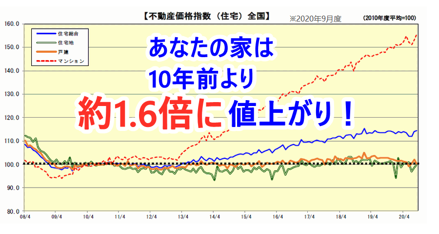 最近、自粛でマイホームを求める人の増加と、東京オリンピックの開催の影響で、日本の地価は今が史上最高になっていると言われています!